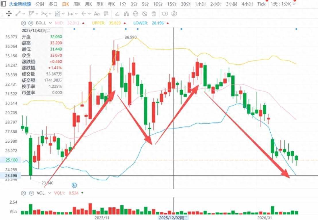 从近期大全新能源美股盘面来看,自在去年10月27日公布了其25Q3季度未经审计的财务业绩后,公司股价便走出了一个“M型”过山车行情,市场整体情绪热冷转换明显,而行业内跳出来的各路的消息则成为影响场内投资者短期交易决策的重要因素。