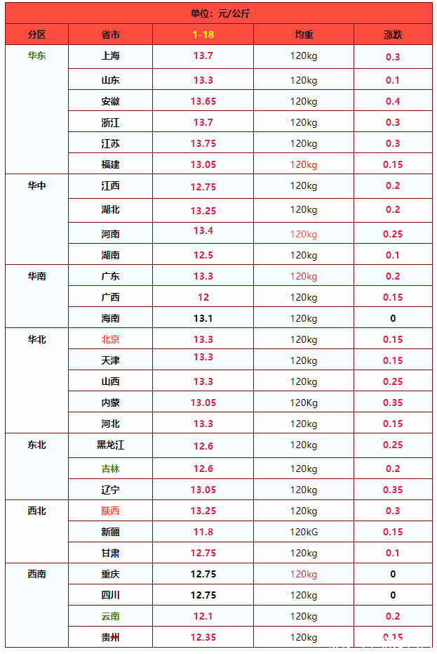 由此了解,近期,国内生猪市场,阶段性多空并存,受集团猪企出栏节奏的变化,猪价以震荡上涨为主!受屠企调价,预估,1月18日,外三元标猪报价在12.91元/公斤,上涨0.19元,南北市场以震荡上涨为主,后市关注接下来集团猪企出栏节奏的变化!