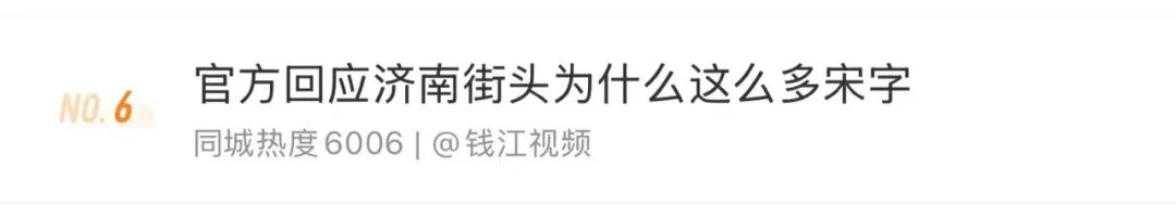 9月7日,一网友发布视频问,“济南街头怎么这么多‘宋’啊?”有网友回复道,“趵突‘宋’,天下第一‘宋’”有没有可能这是‘泉’”“济南市号称‘宋城’,全城七十二名‘宋’!”……