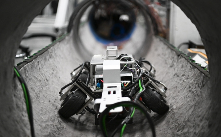 6月25日在广东省深圳市的广东省具身智能机器人创新中心拍摄的管道检测机器人。新华社记者 邓华 摄